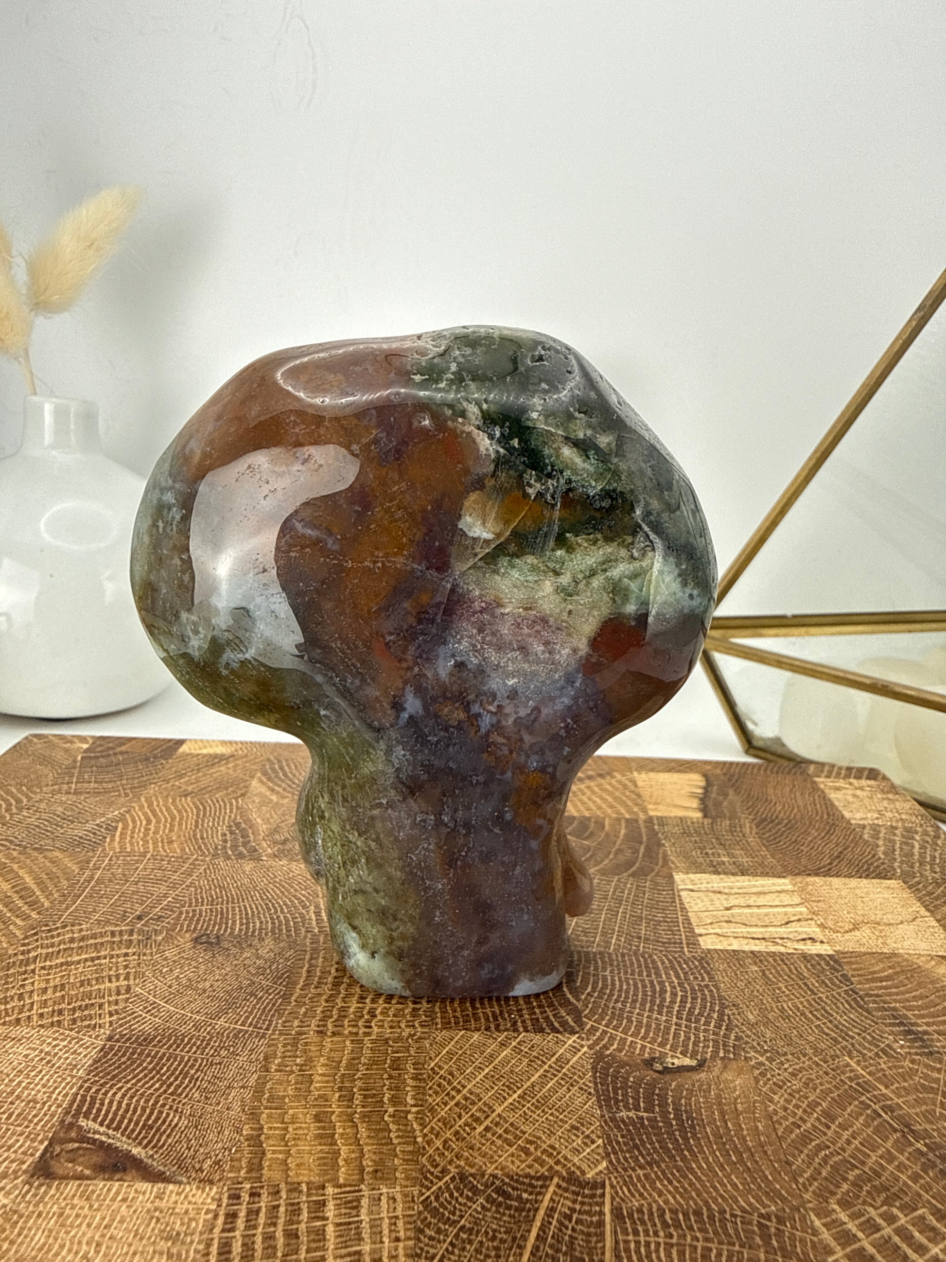 Ocean Jasper mushroom buddy. Approximately 3.5” tall.
